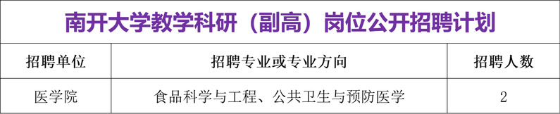(二)教学科研(副高)公开招聘岗位(与医学院合并招聘)